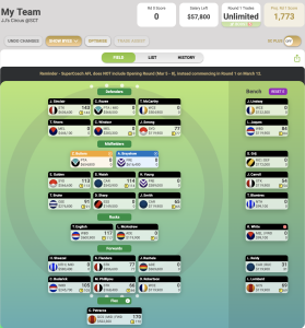 A few of these have left the building for various reasons, most of which I am incapable of explaining fully, but will endeavour to. Got a little anxious about Kerch’s lack of ball handling pre season, although he will still rack them up if playing half back. Was more about Sinclair’s and Windsor’s rise in appreciation after the AAMI and R0 I guess. Gibcus presented as less of option once some rookie defenders put their hands up to provide faster cash options.